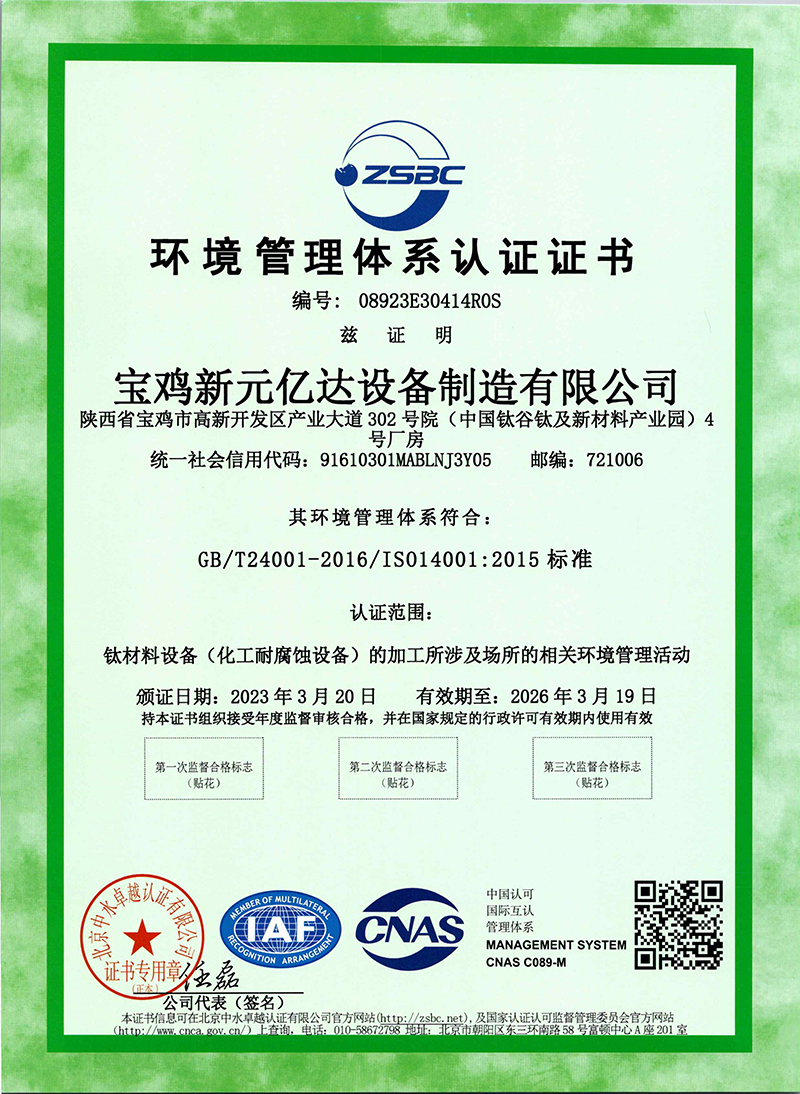 环境管理体系认证证书